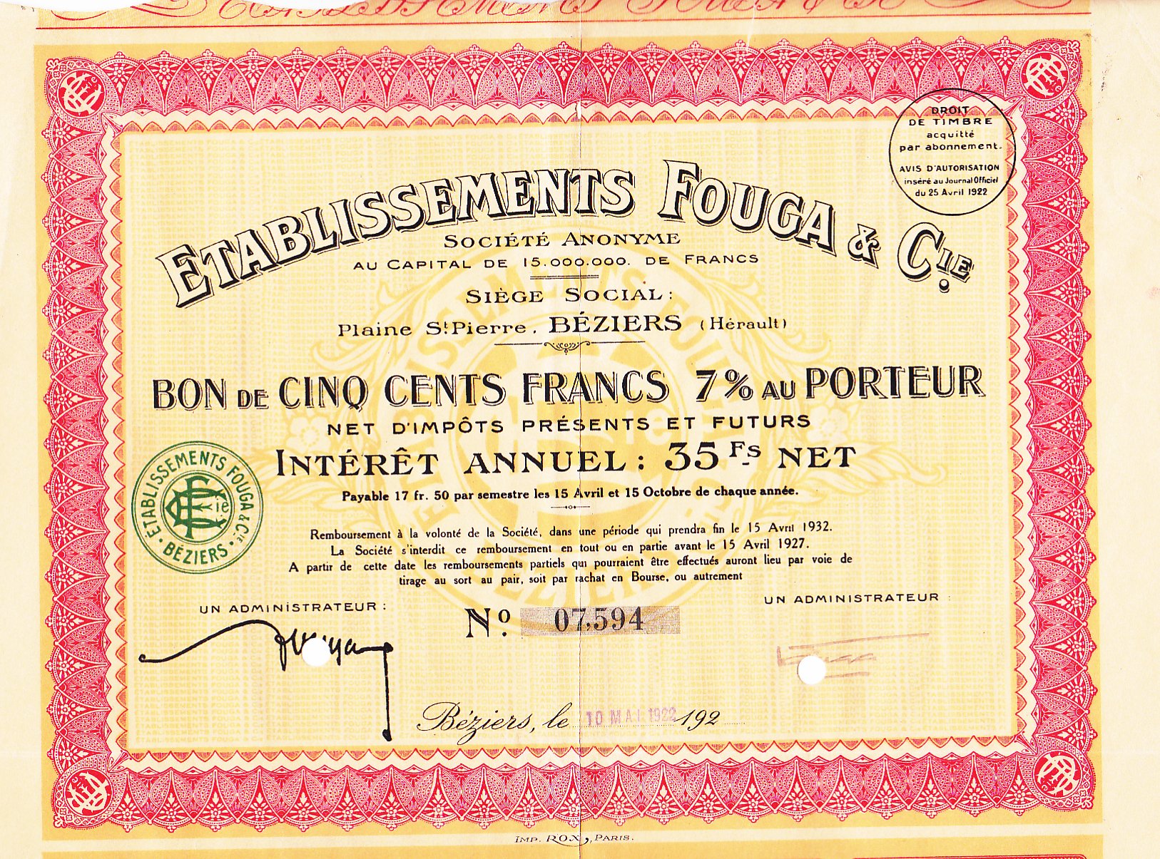 Sté Fermière des Assurances des Chemins de Fer