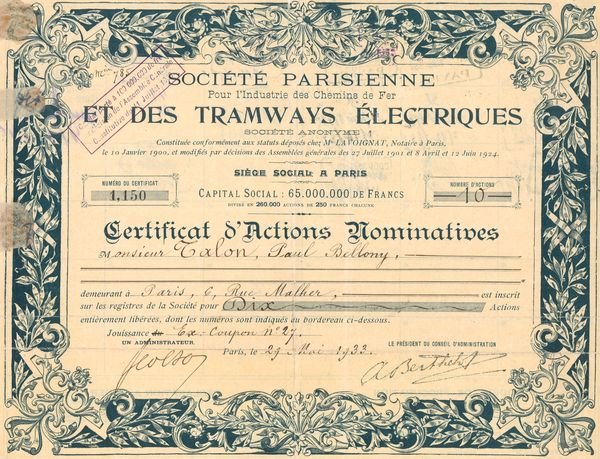 Sté Parisienne pour l’industrie des Chemins de Fer et des Tramways